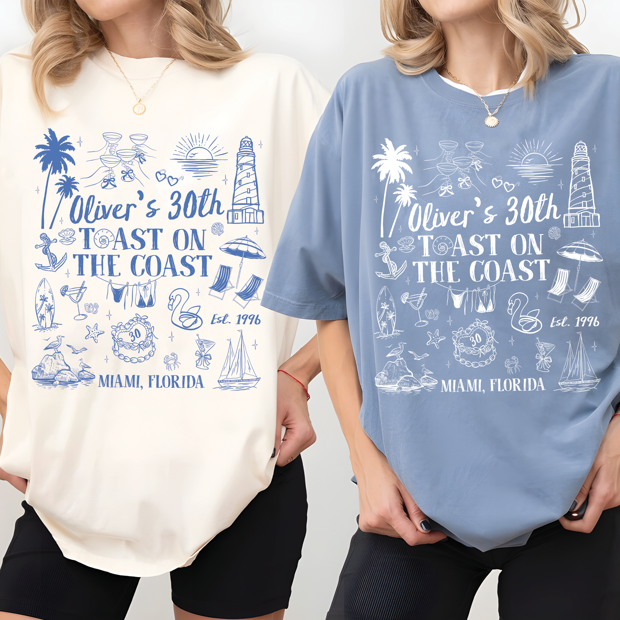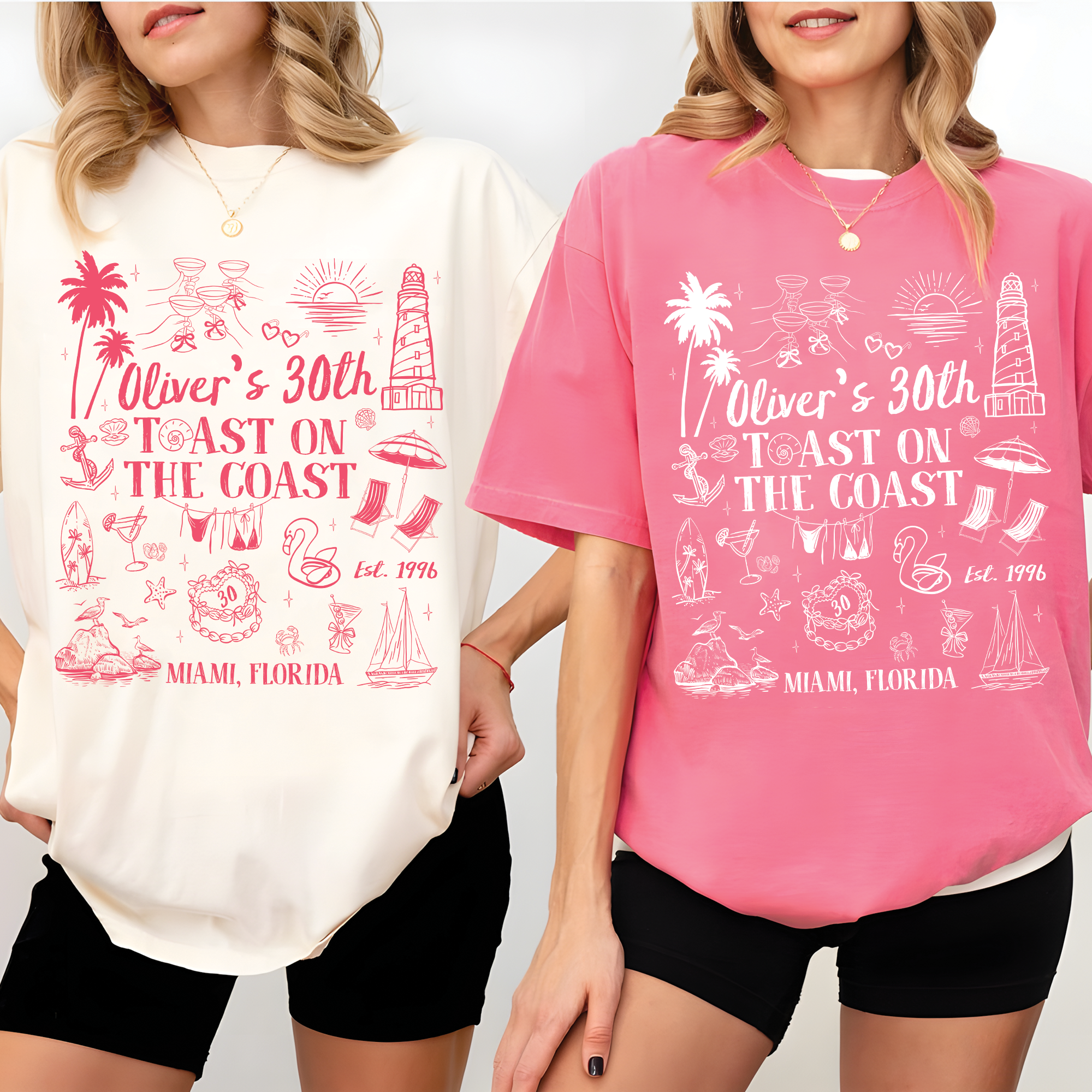 Celebrate in style with our 30th Birthday Cruise Shirt, perfect for girls trips and milestone birthday cruises. This fun and stylish tee is made for your Toast On The Coast celebration and birthday cruise getaway.