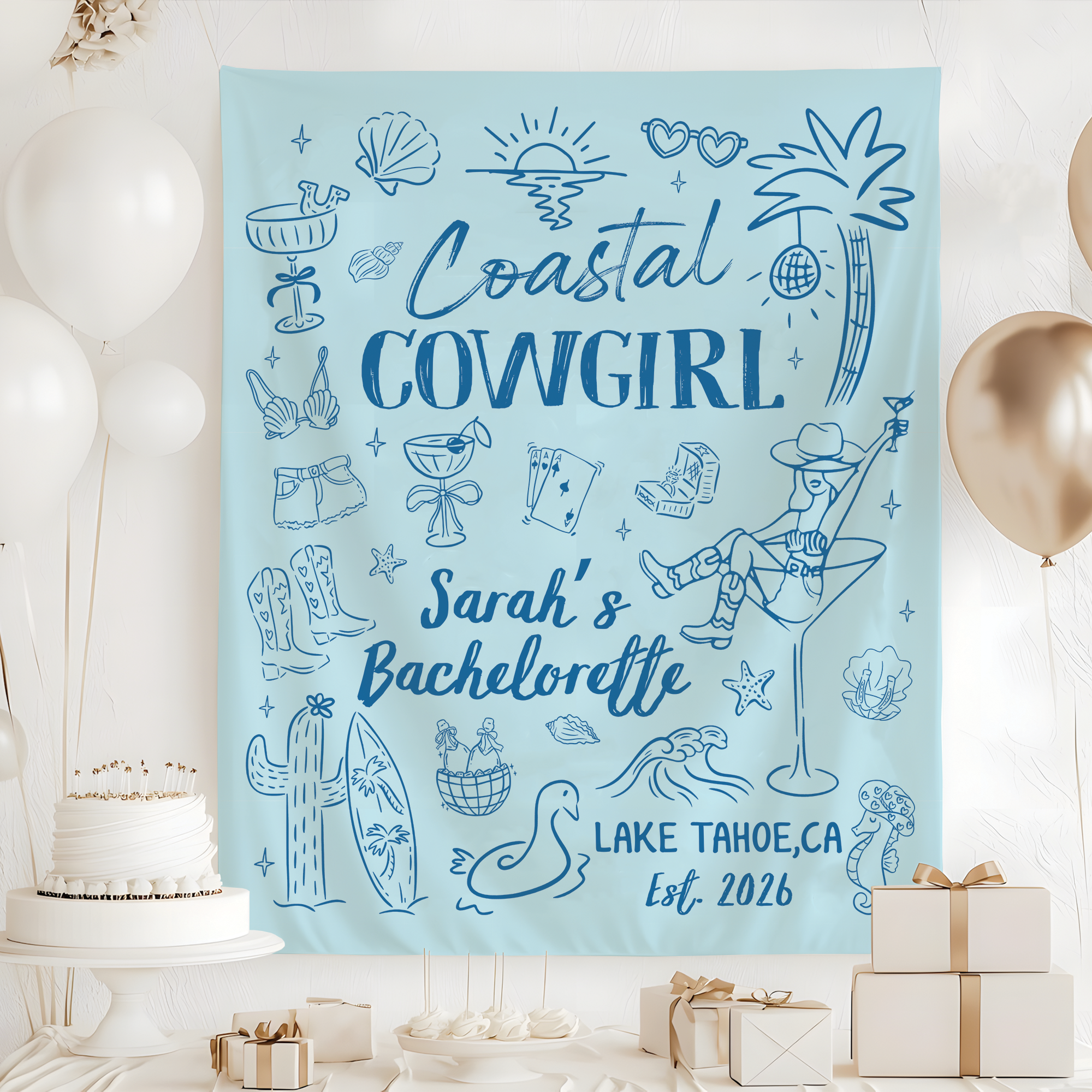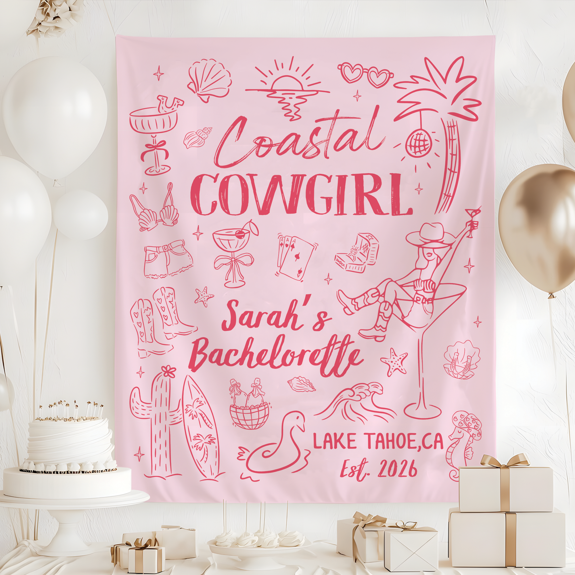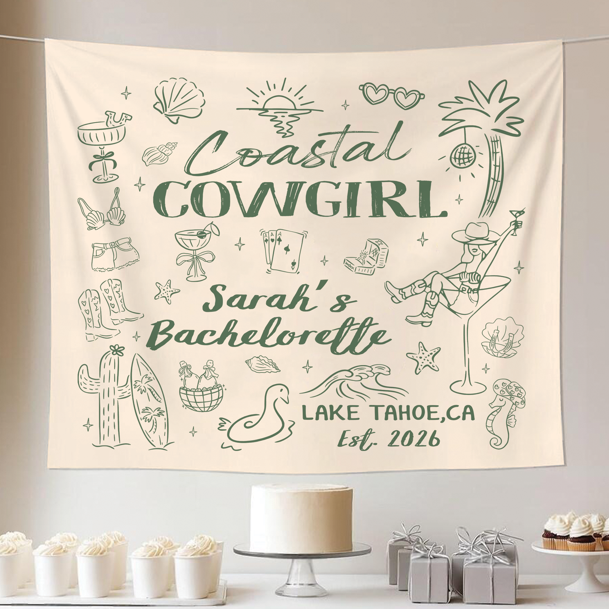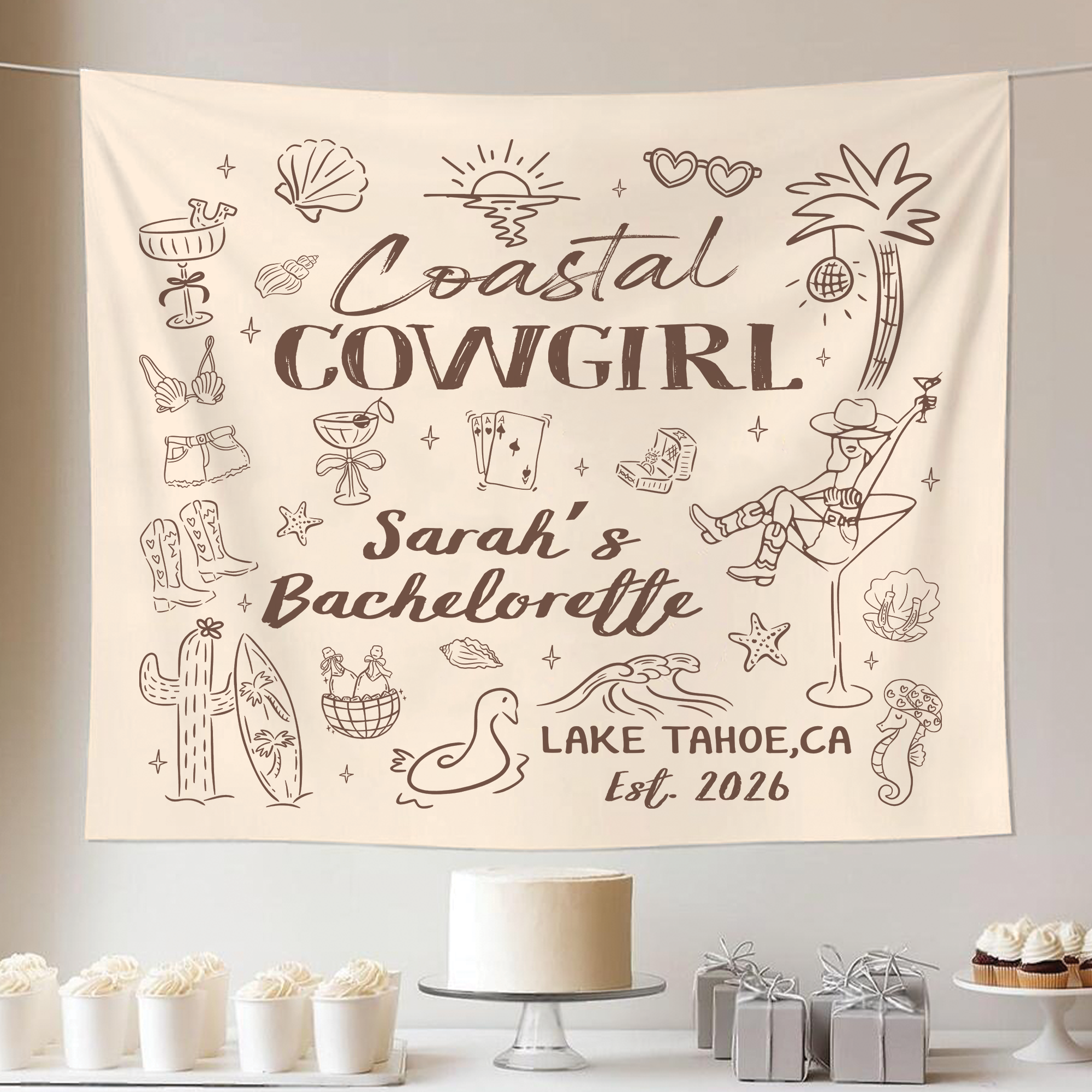 Bachelorette Party Tapestry becomes instantly unforgettable with this custom wall tapestry, designed as a stylish custom backdrop for bridal showers, and pre-wedding parties. Fun, eye-catching, and full of personality, this tapestry sets the vibe and elevates your party décor effortlessly.