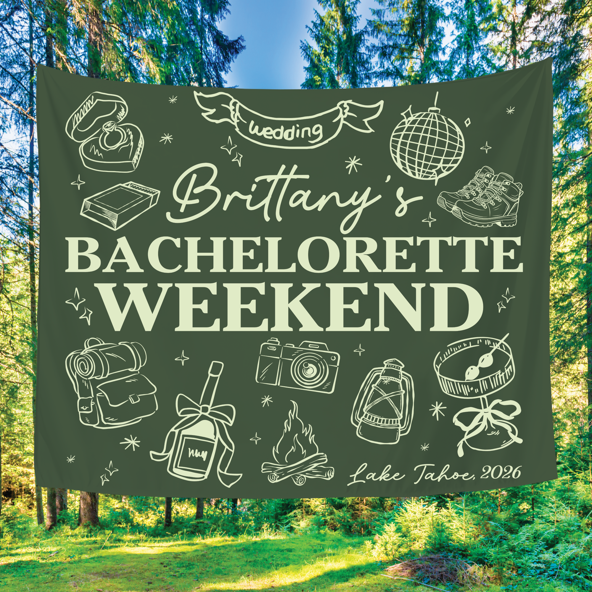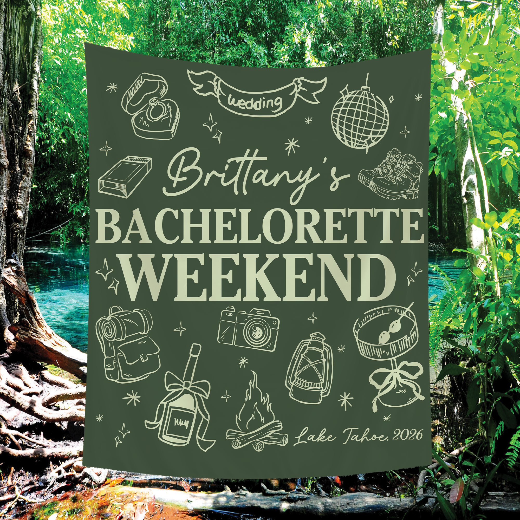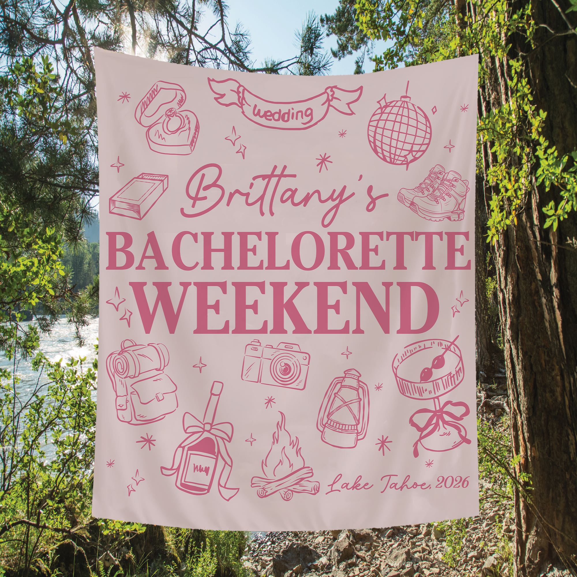 A custom wall tapestry is a beautiful way to elevate any room or event décor. Whether styled as a bridal backdrop, engagement banner, or highlight piece for a bachelorette weekend, it delivers both style and sentiment in one stunning display.