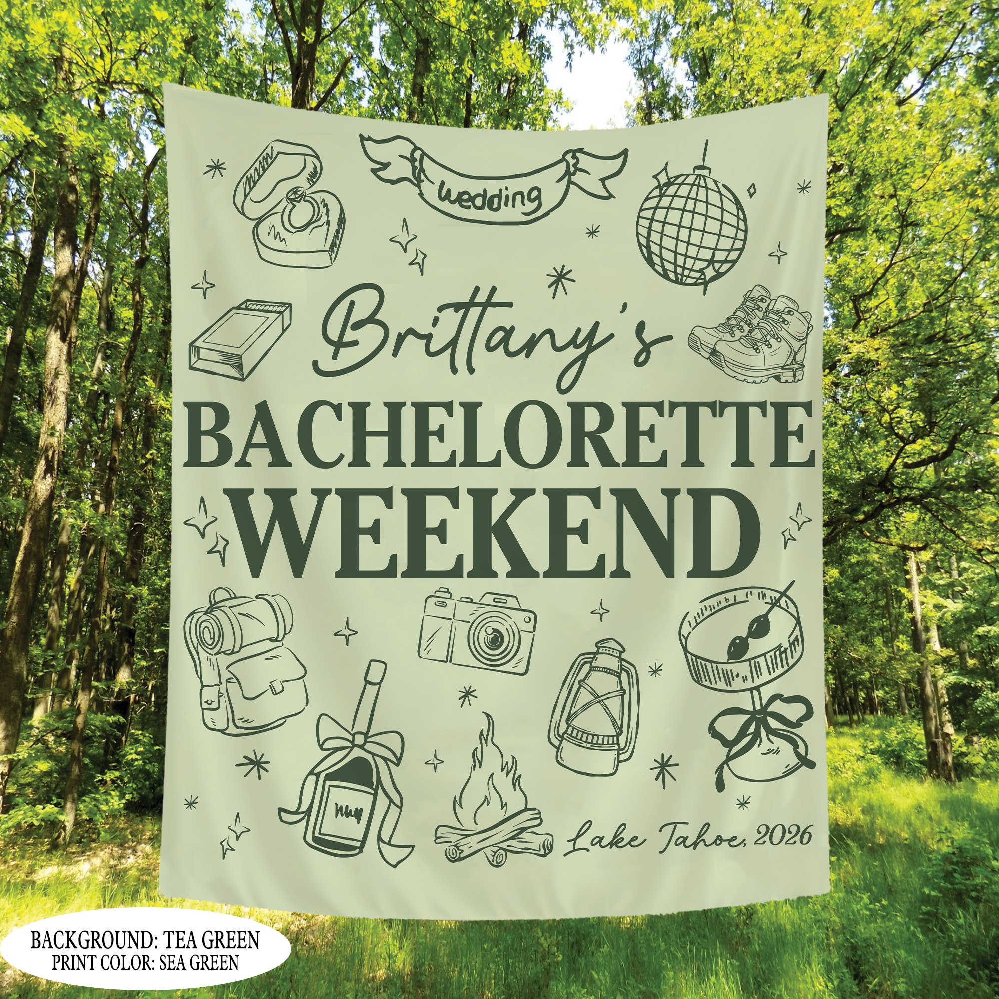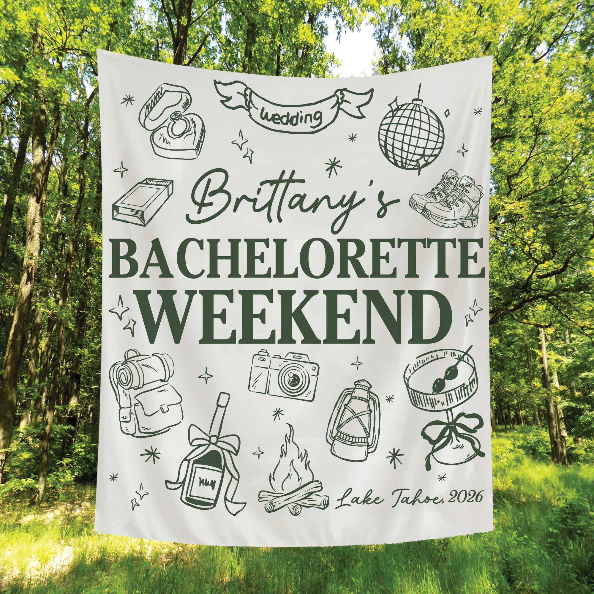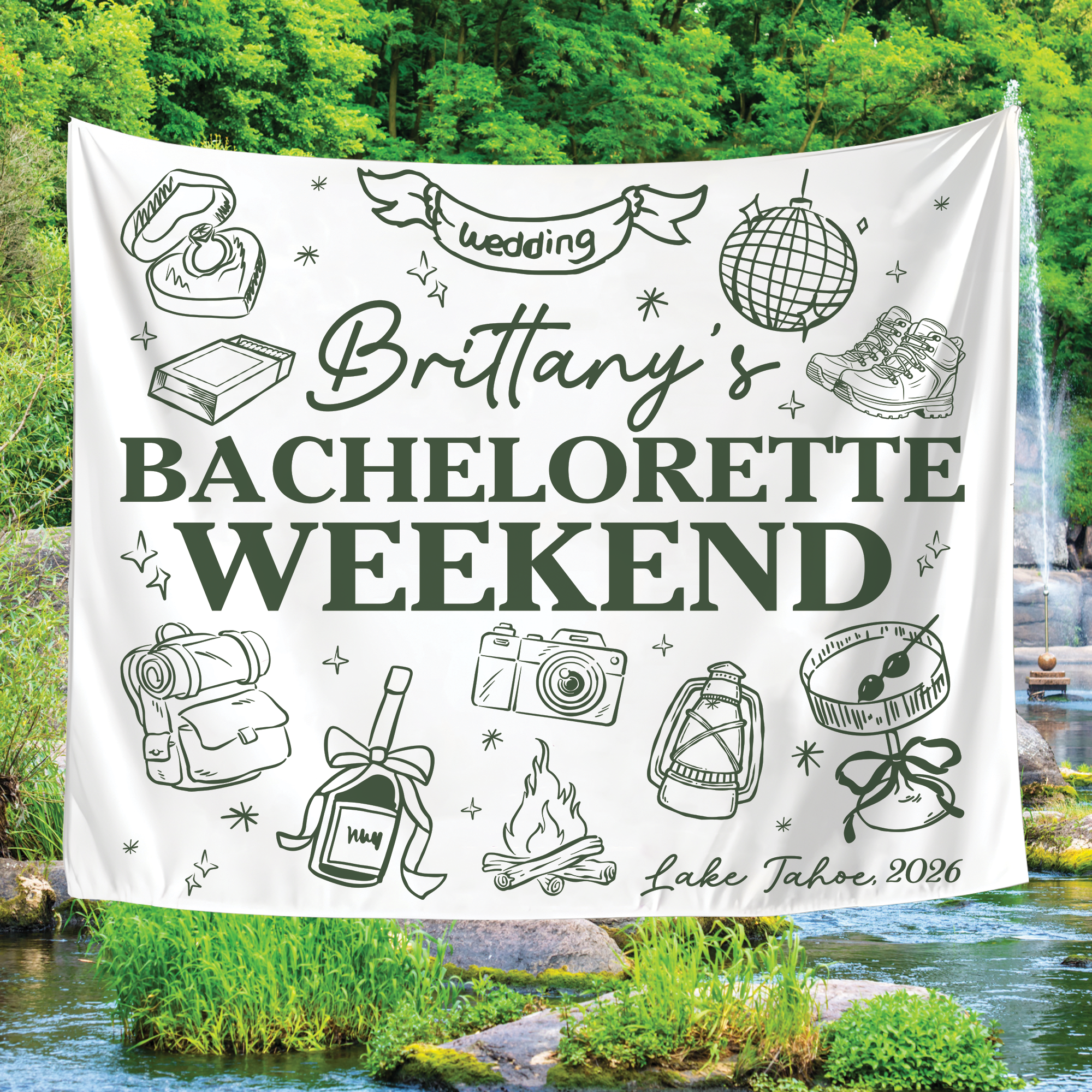 A custom wall tapestry is a beautiful way to elevate any room or event décor. Whether styled as a bridal backdrop, engagement banner, or highlight piece for a bachelorette weekend, it delivers both style and sentiment in one stunning display.