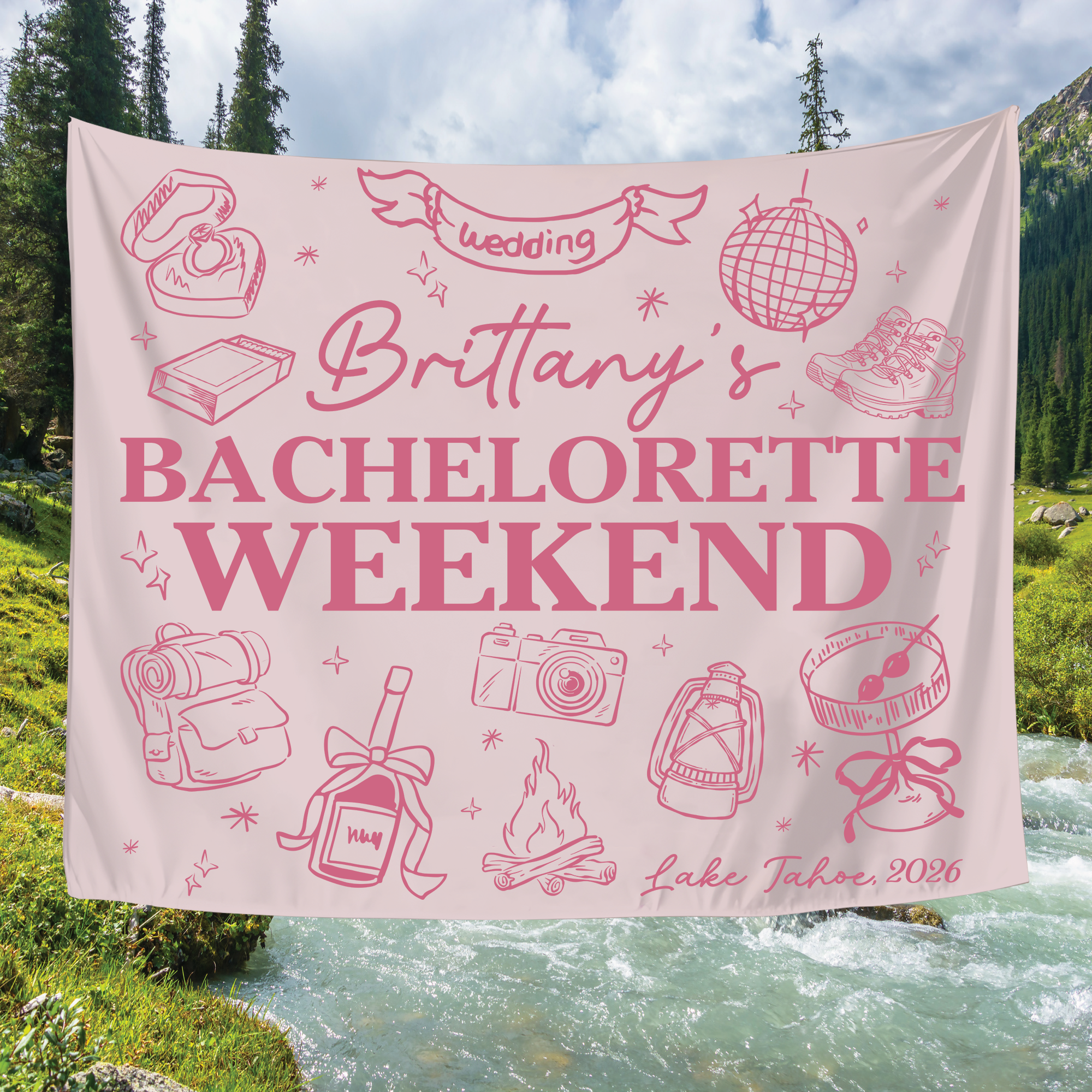 Perfect as a bridal backdrop, engagement banner, or statement photo wall, this design creates the ideal setting for capturing memorable moments with your girls. Whether you’re celebrating the bride-to-be or decorating for a wedding event, this wedding tapestry adds a personal and meaningful touch to any space.