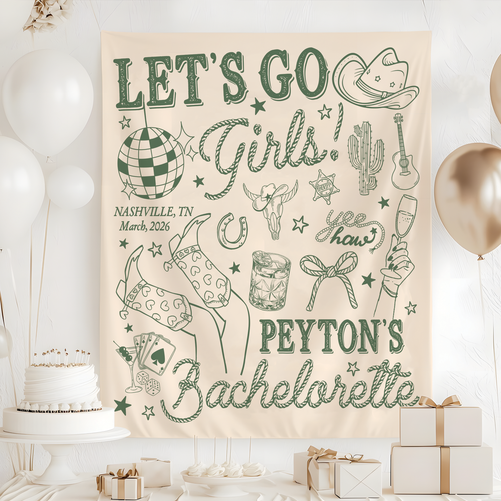 Perfect as a bridal backdrop, engagement banner, or statement photo wall, this design creates the ideal setting for capturing memorable moments with your girls. Whether you’re celebrating the bride-to-be or decorating for a wedding event, this wedding tapestry adds a personal and meaningful touch to any space.