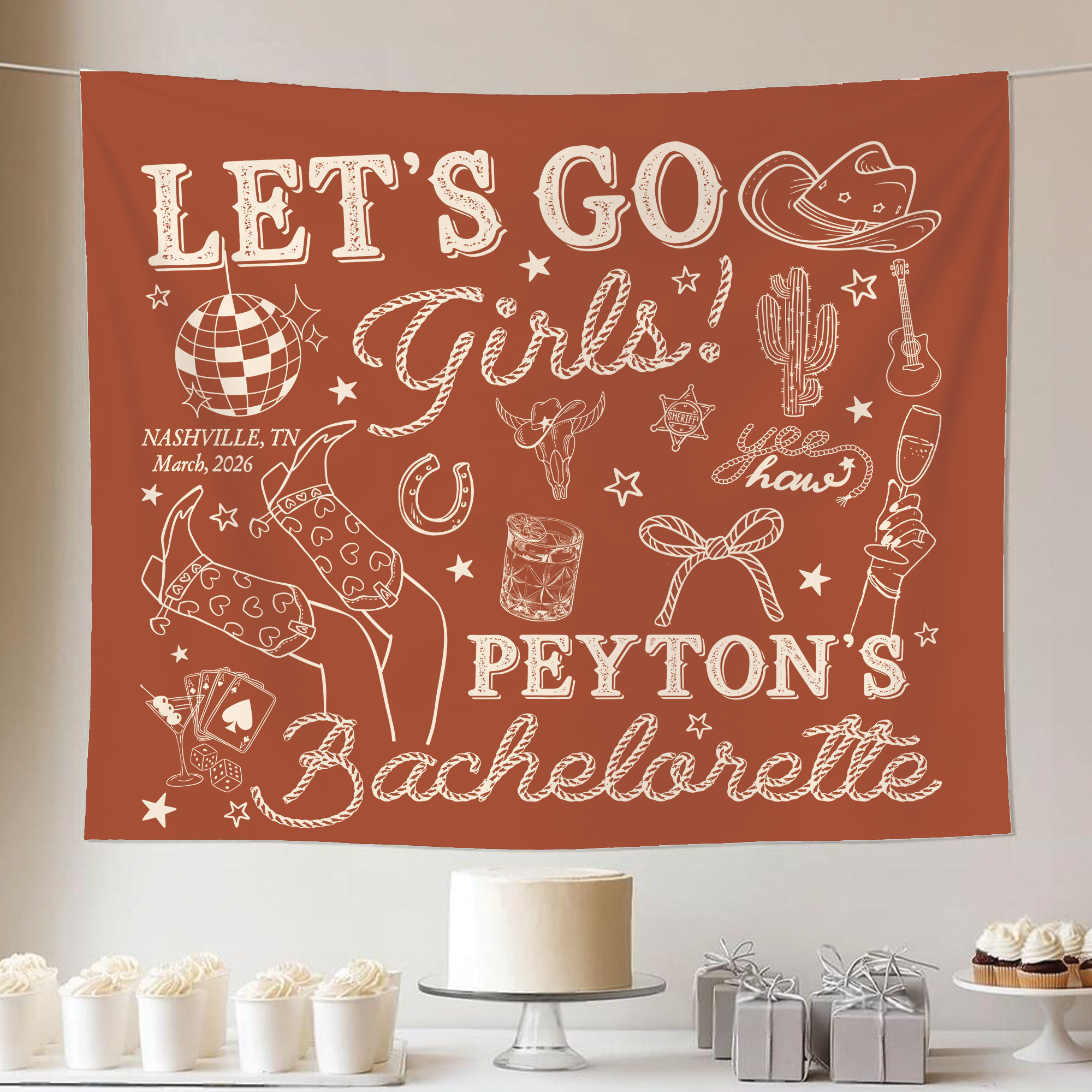 A custom wall tapestry is a beautiful way to elevate any room or event décor. Whether styled as a bridal backdrop, engagement banner, or highlight piece for a bachelorette weekend, it delivers both style and sentiment in one stunning display.