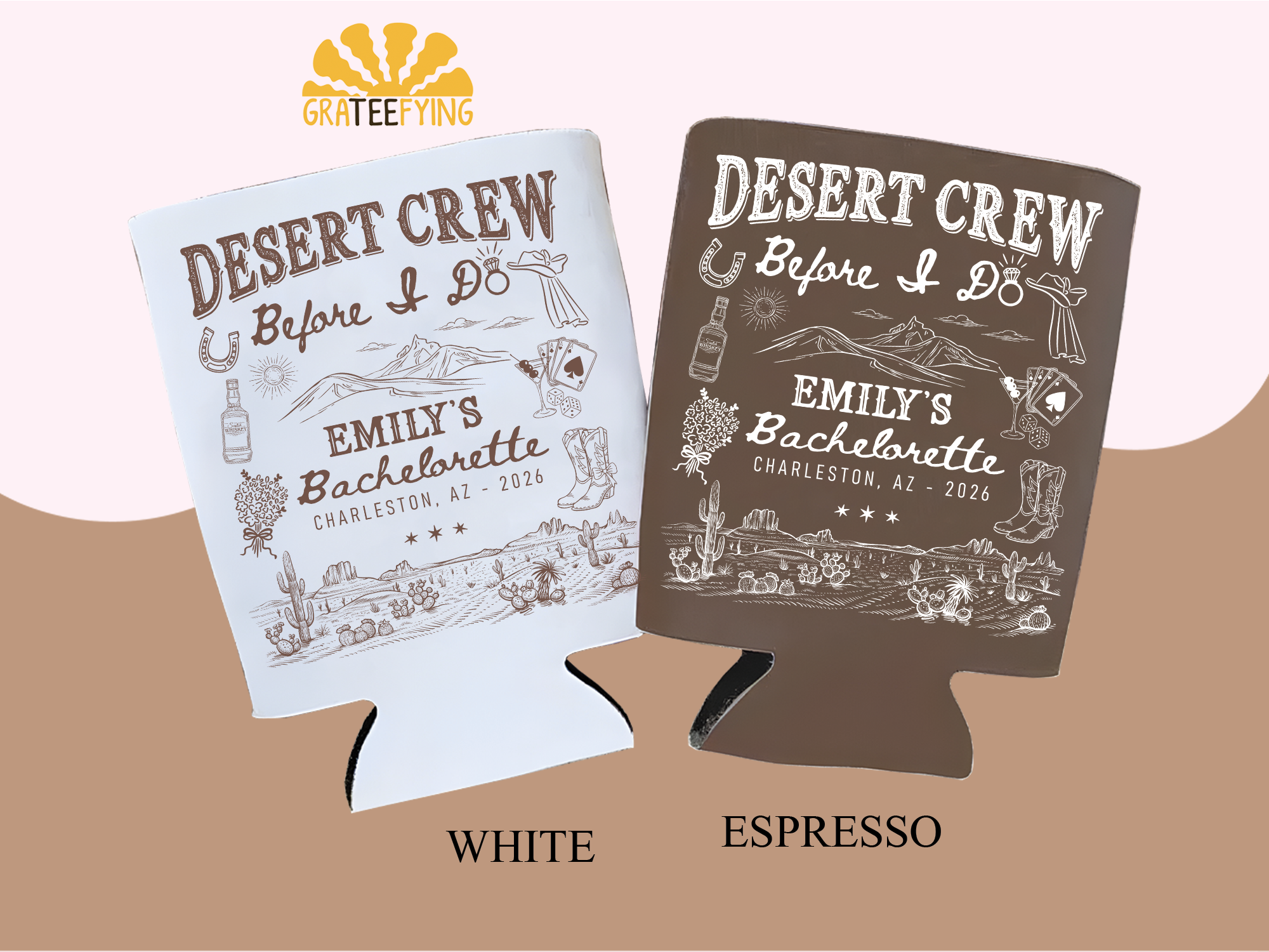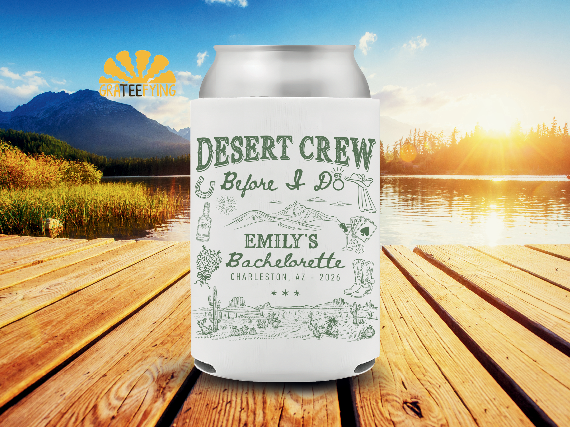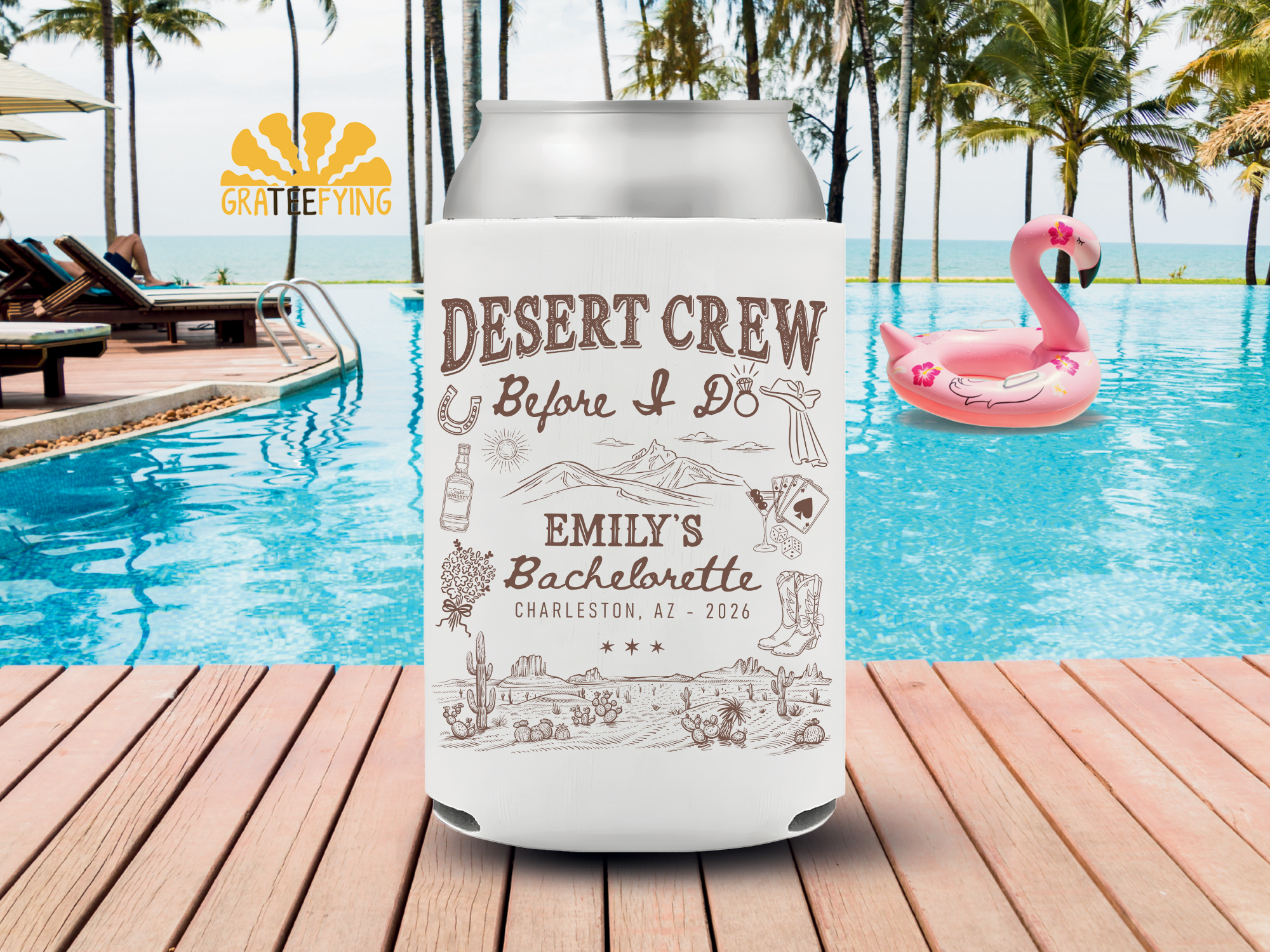 Make your desert bachelorette celebration cooler in every way with our Custom Can Cooler – designed to keep your drinks icy and your wedding weekend memories unforgettable!