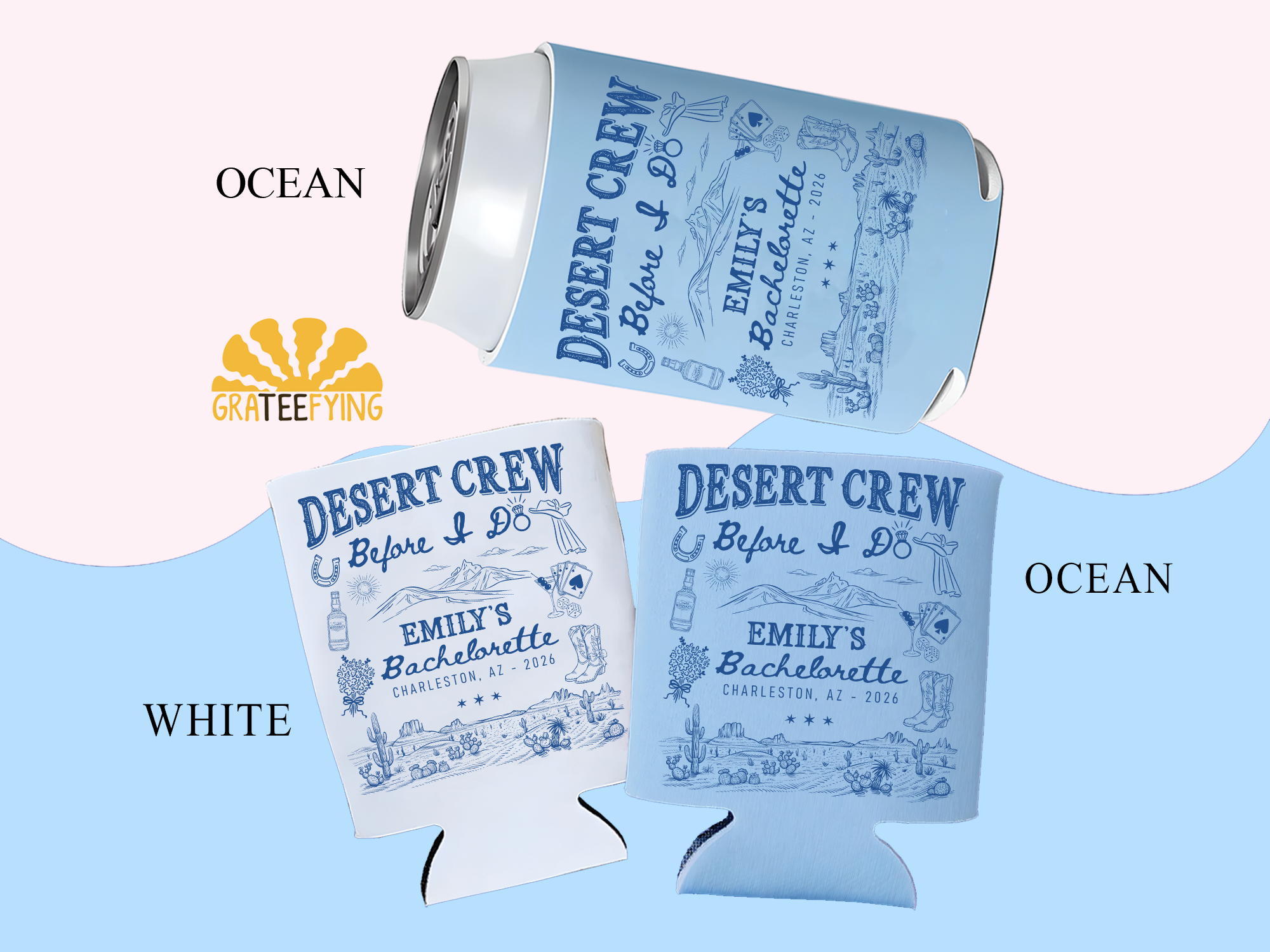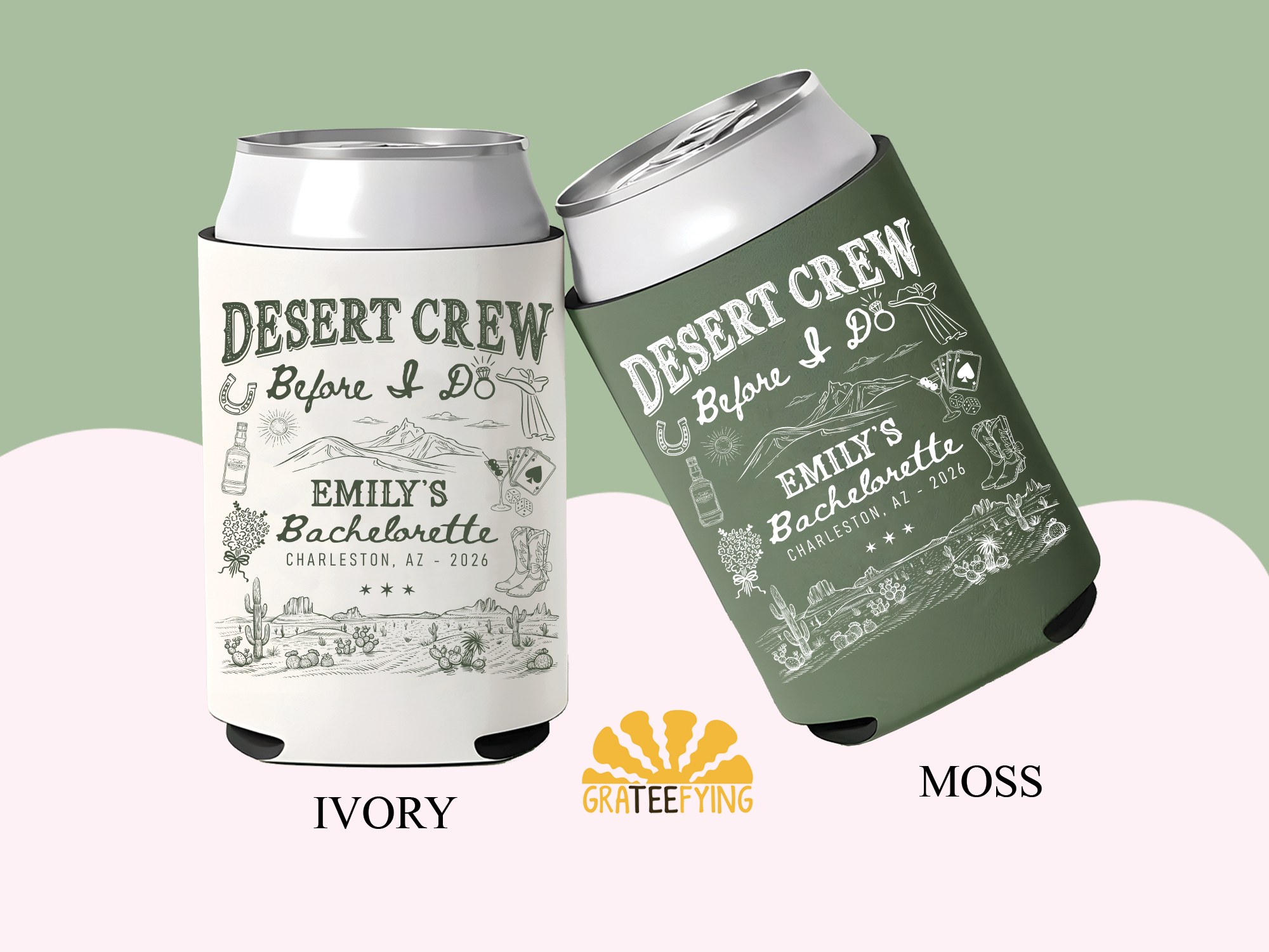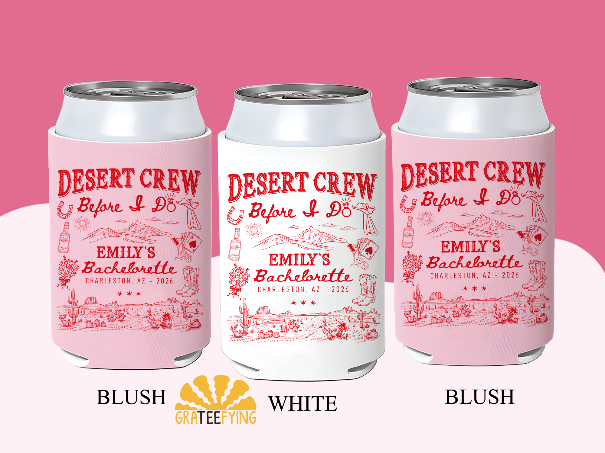 Make your desert bachelorette celebration cooler in every way with our Custom Can Cooler – designed to keep your drinks icy and your wedding weekend memories unforgettable!