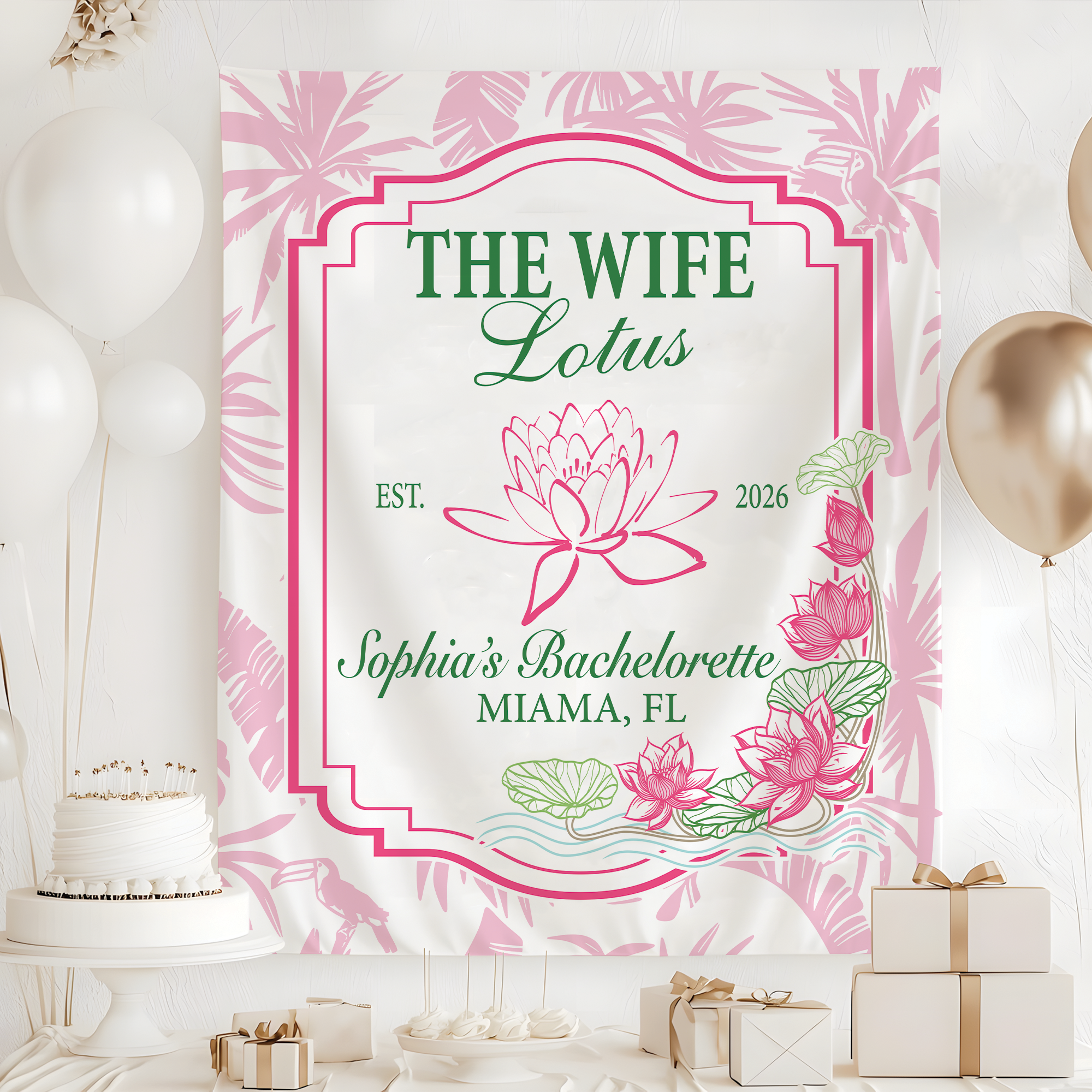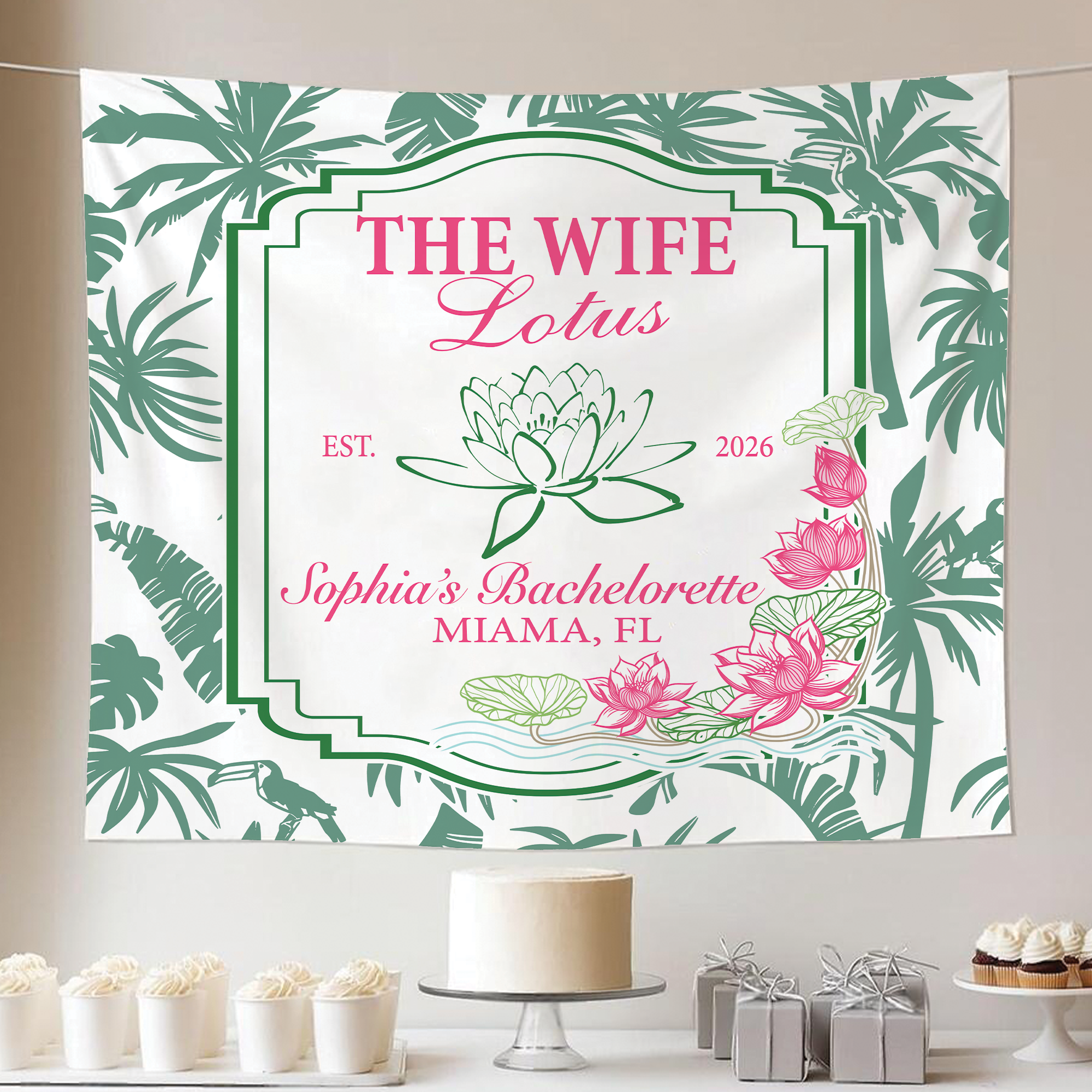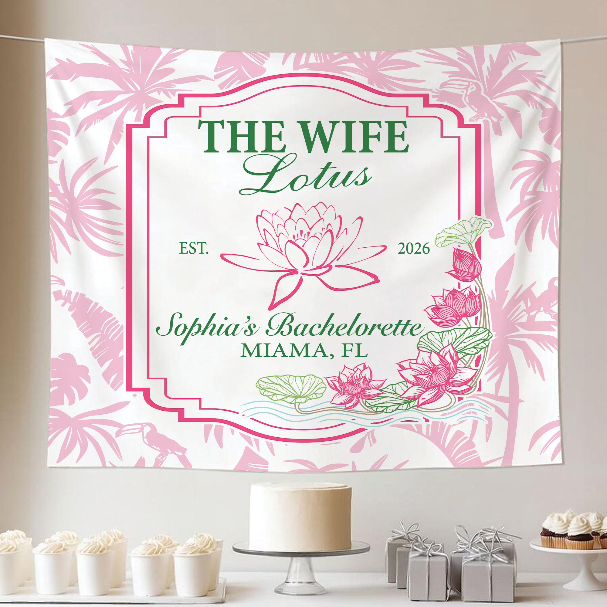 A custom wall tapestry is a beautiful way to elevate any room or event décor. Whether styled as a bridal backdrop, engagement banner, or highlight piece for a bachelorette weekend, it delivers both style and sentiment in one stunning display.